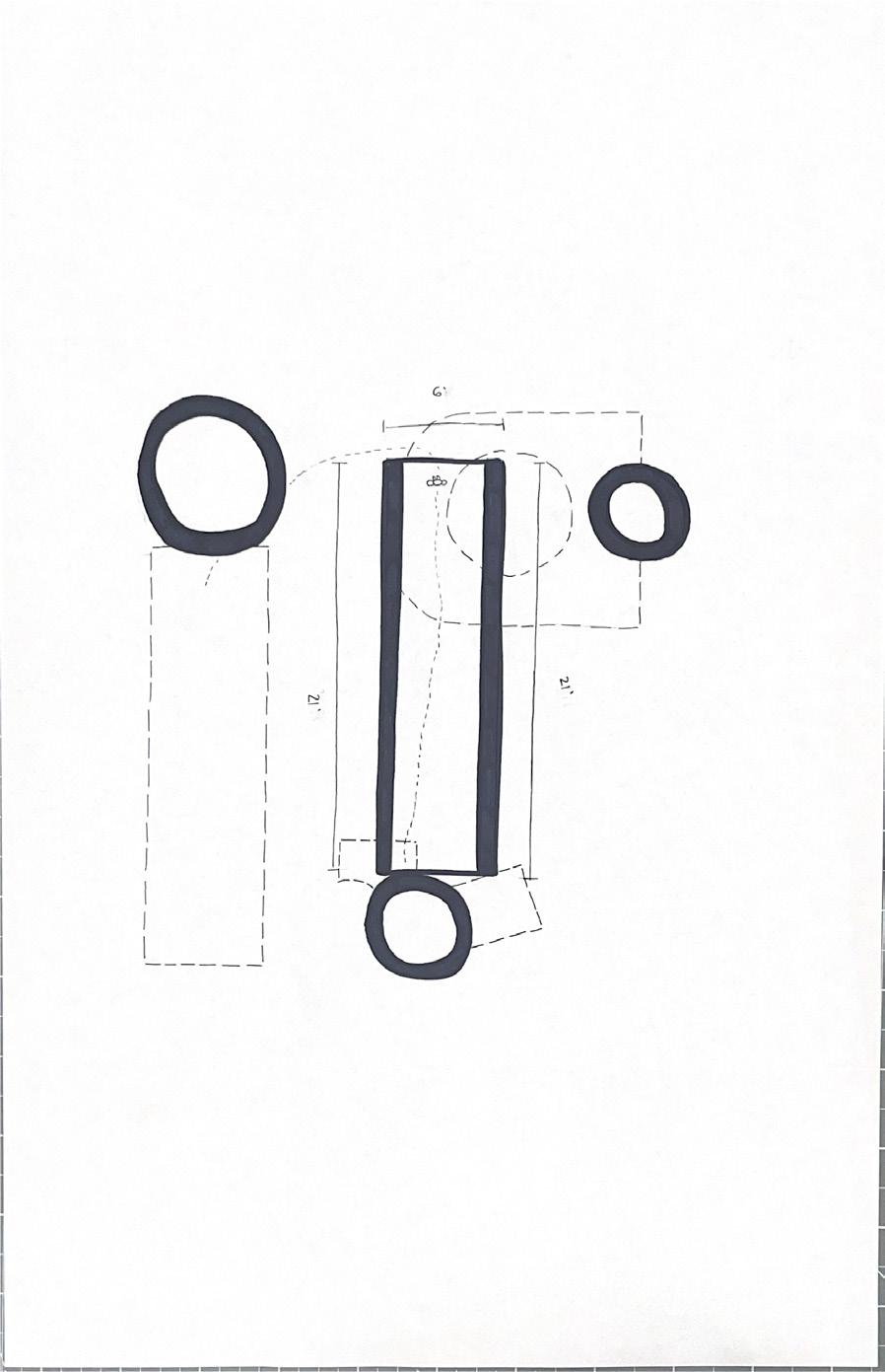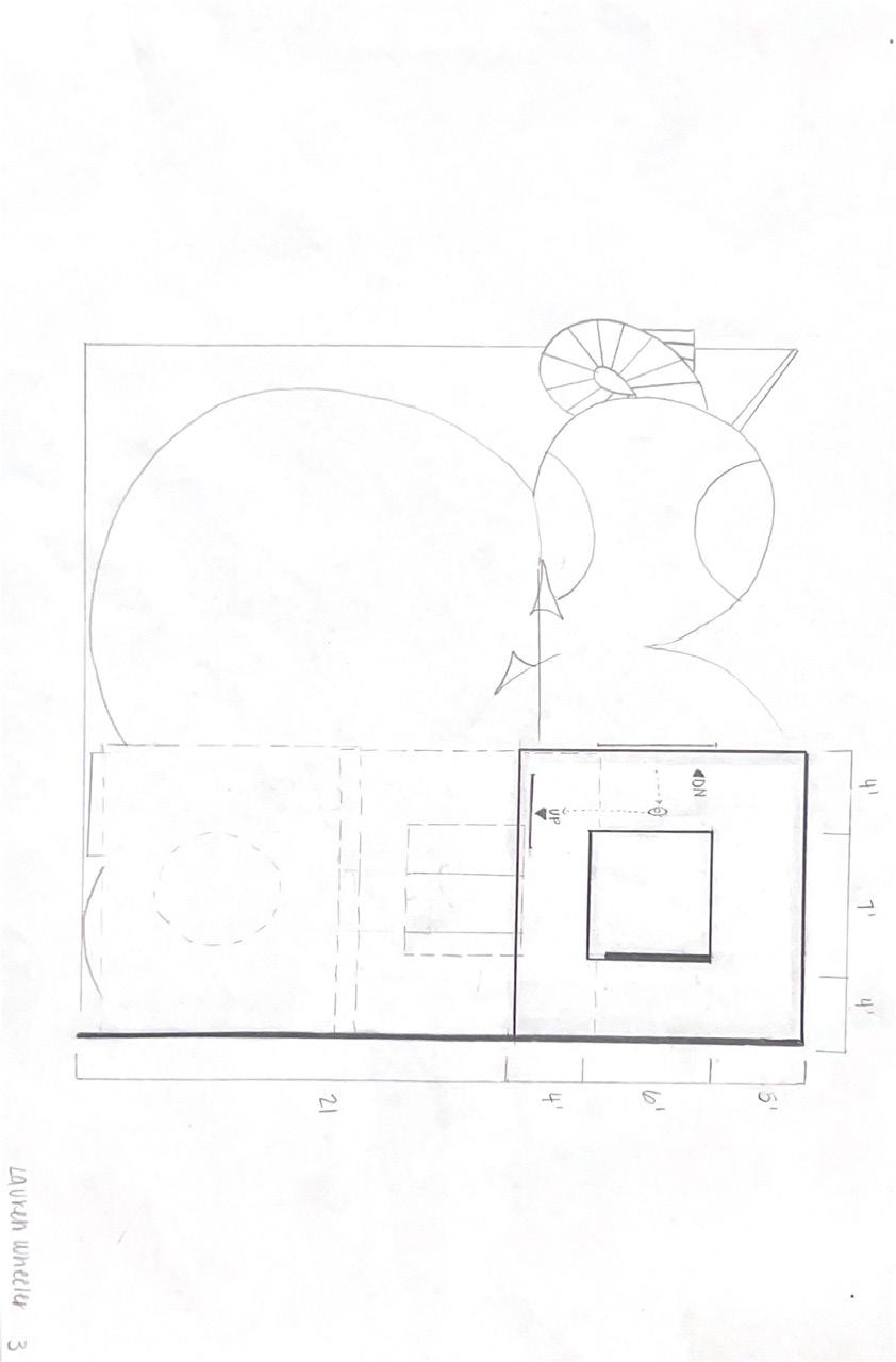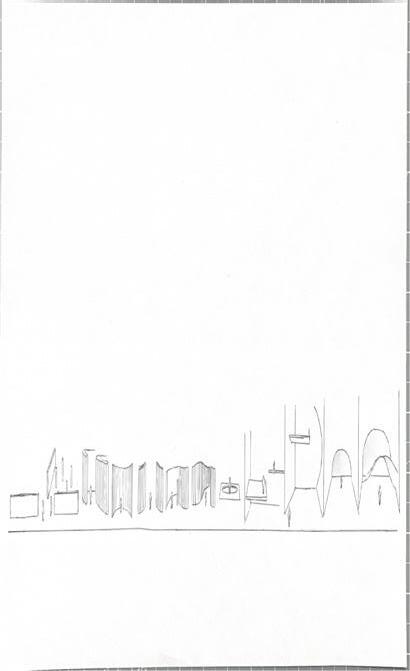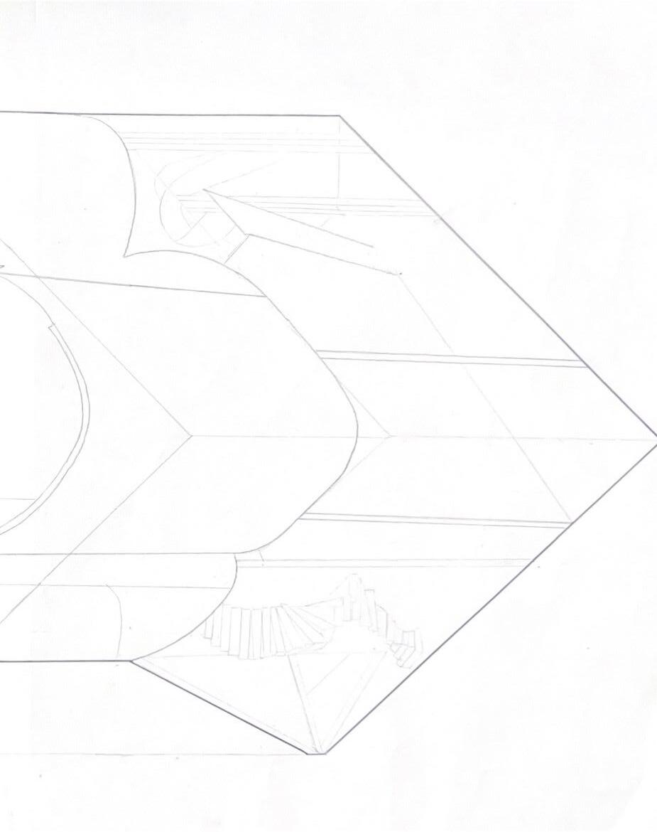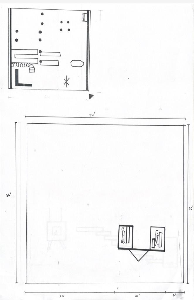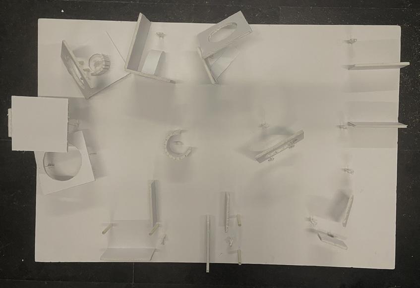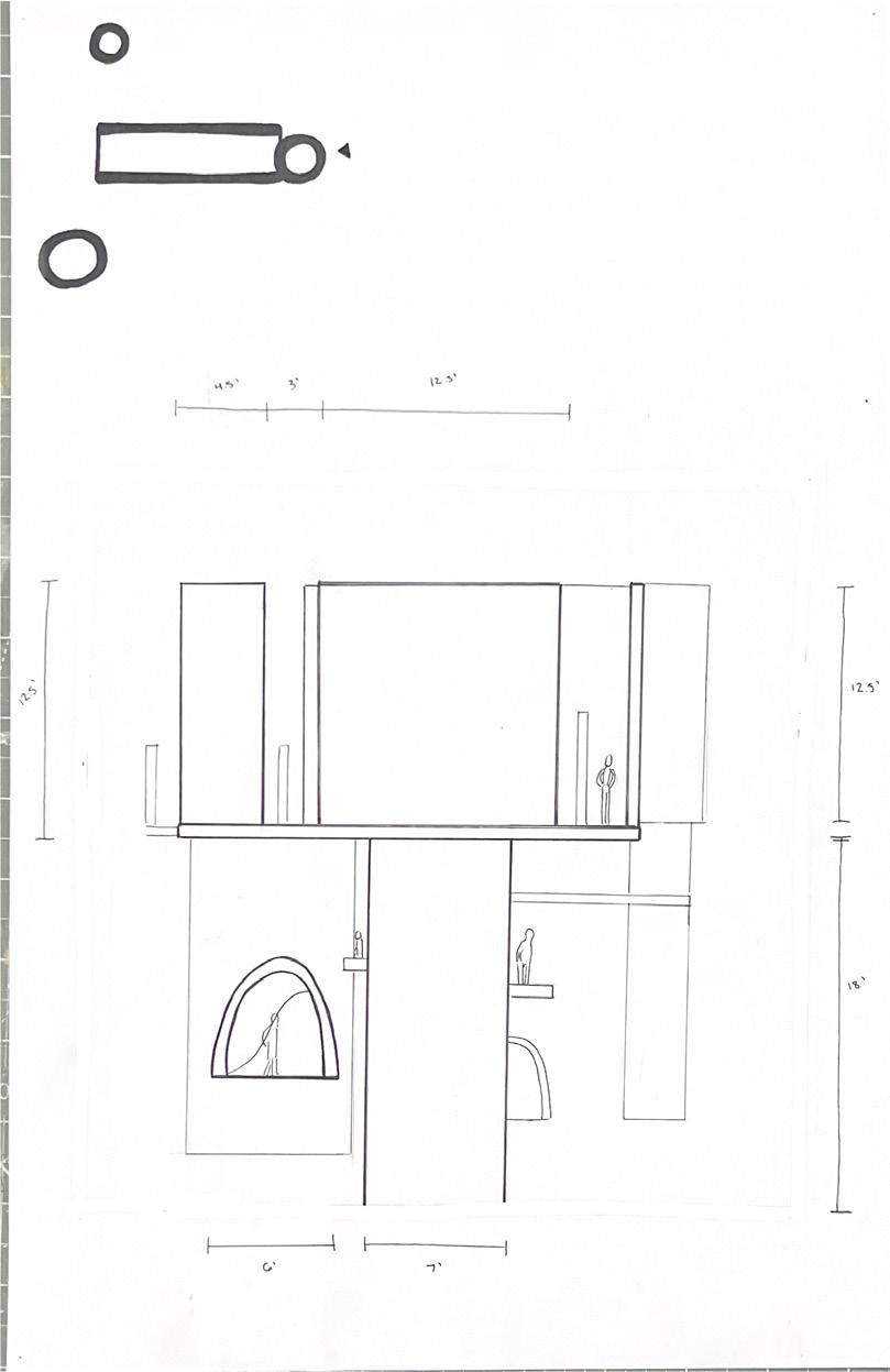 I started this dra� with category 58. The image shows a circular void with a sphere placed in it. The human gure stands below the shape. I made this the rst category due to the ominous feeling of the scene, and the tone it sets for the rest of the display.