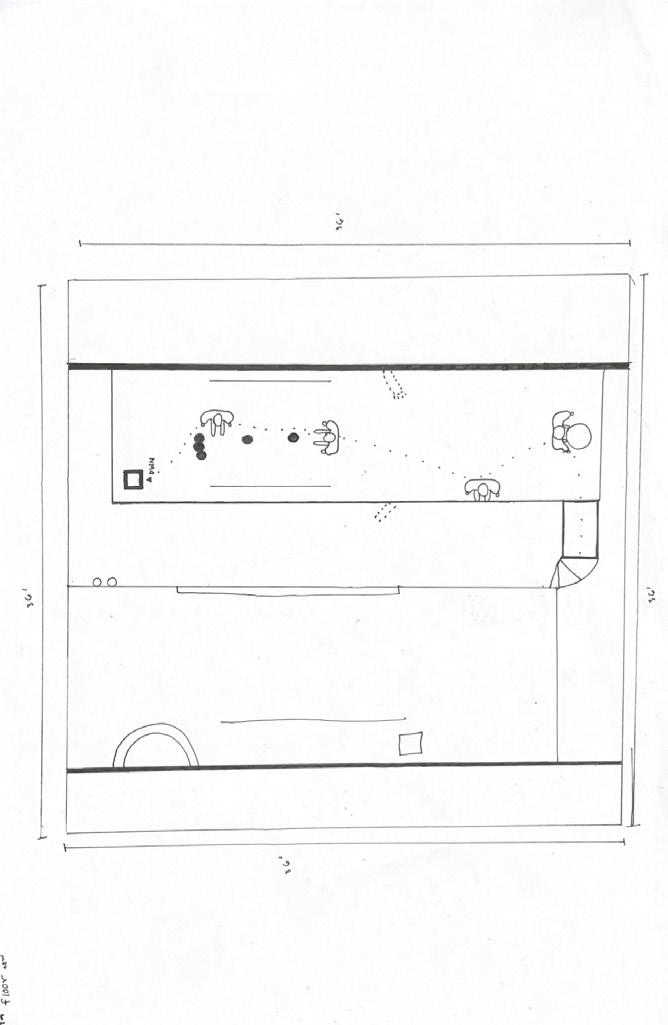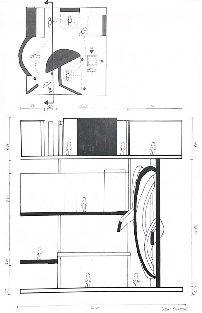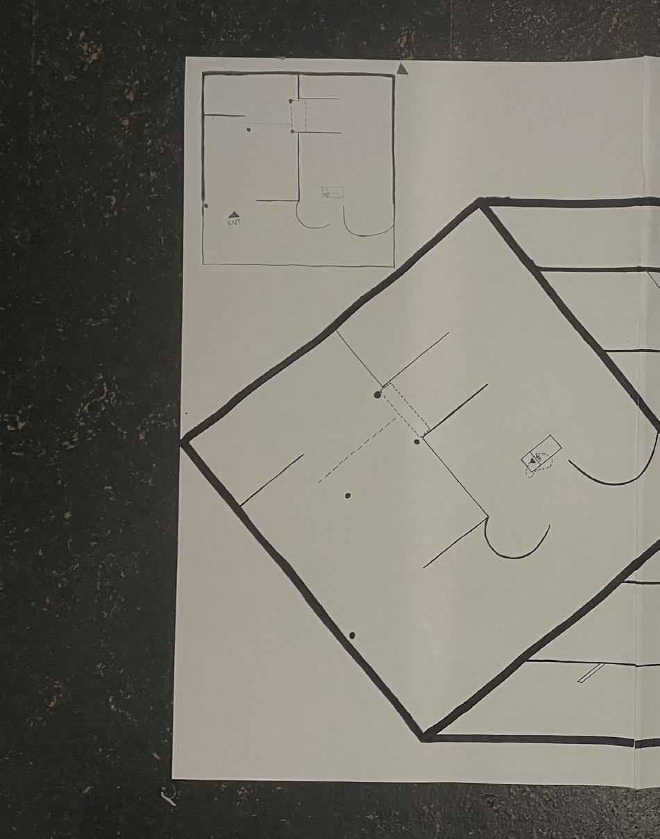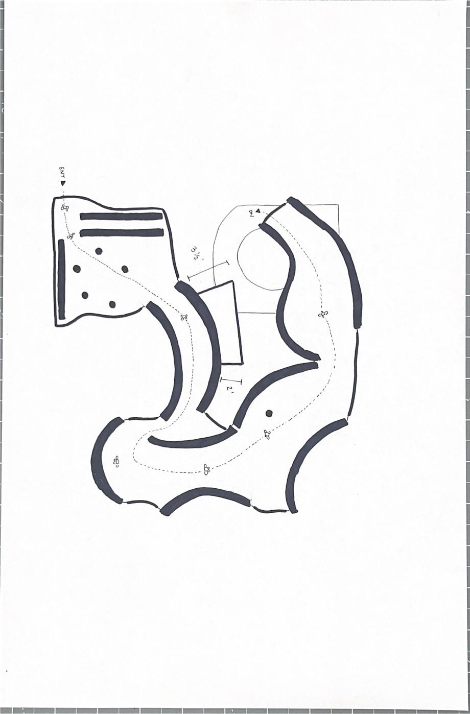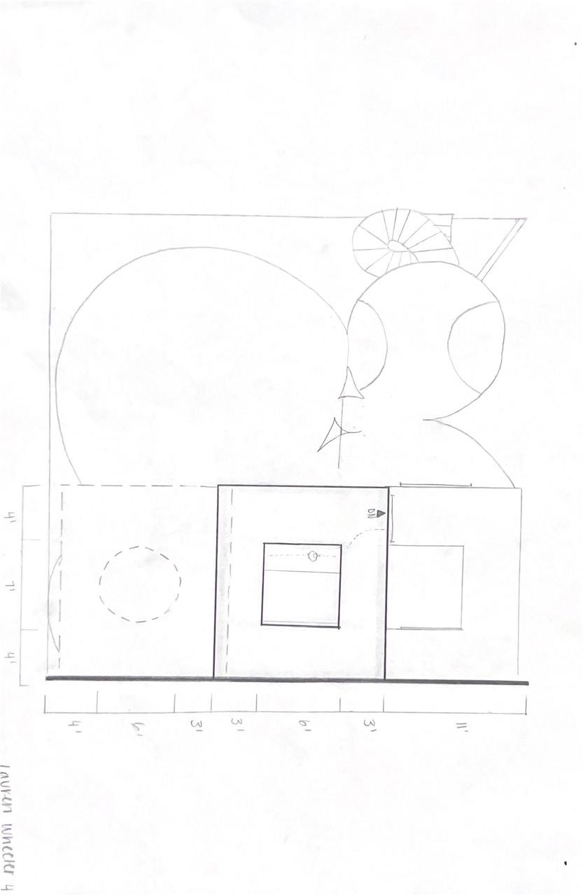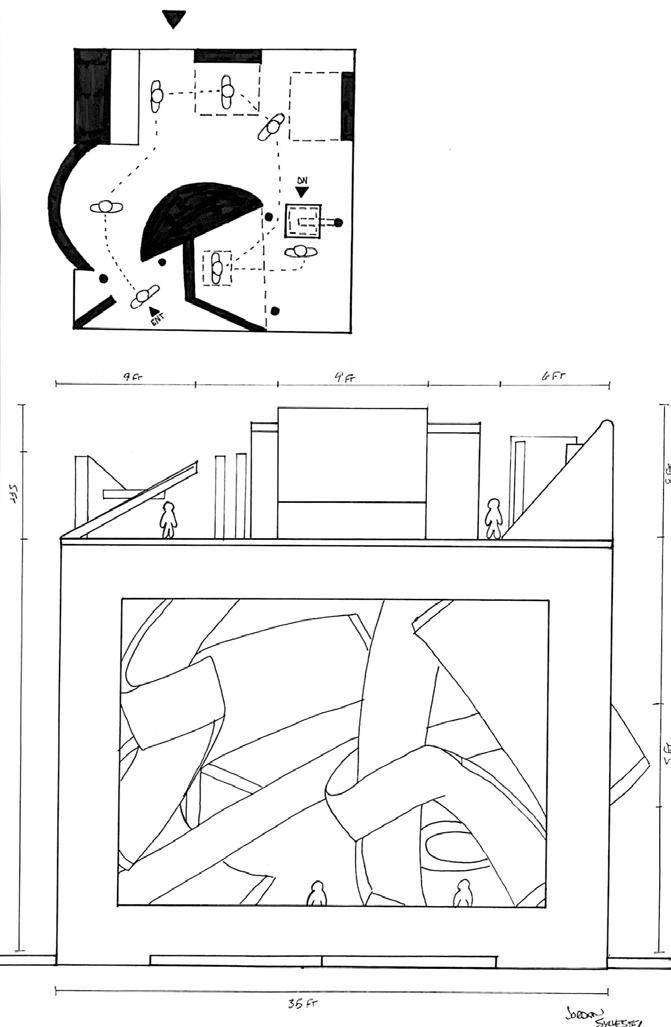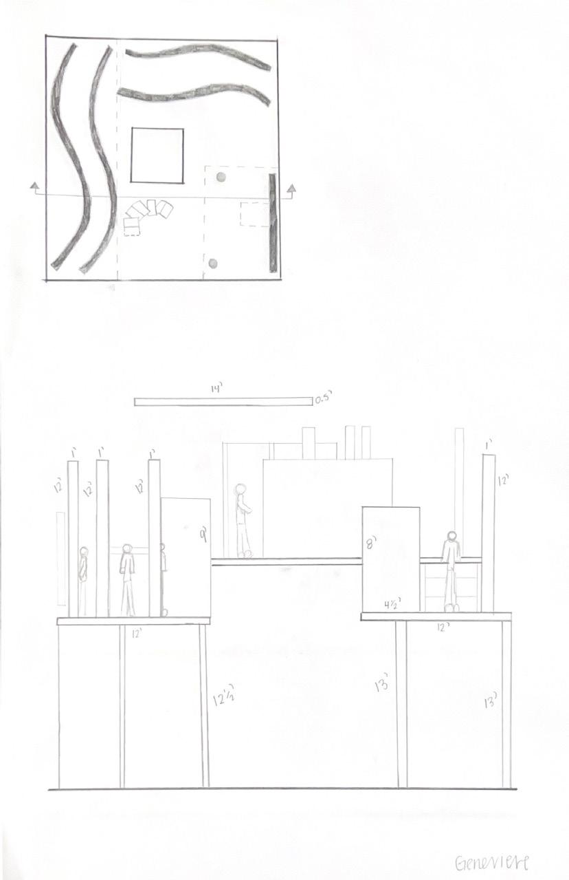 I started this dra� with category 58. The image shows a circular void with a sphere placed in it. The human gure stands below the shape. I made this the rst category due to the ominous feeling of the scene, and the tone it sets for the rest of the display.
