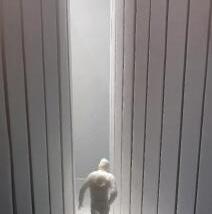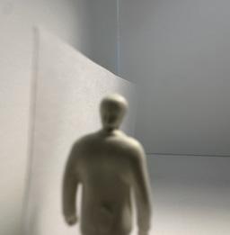In the third photo, the wall slants toward the figure, who must duck to get around it. I must move more to the right to continue forward. This makes me feel increasingly more trapped and upset.