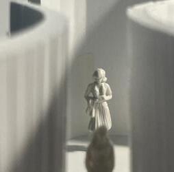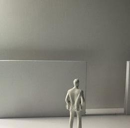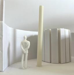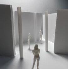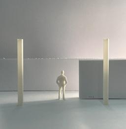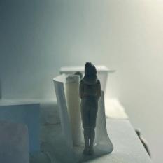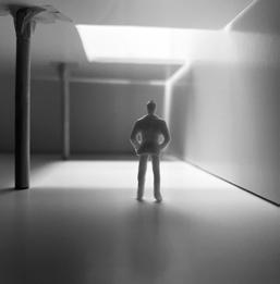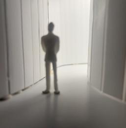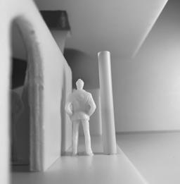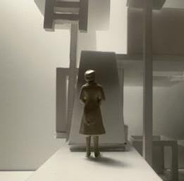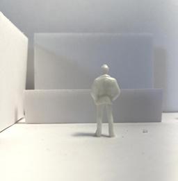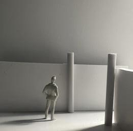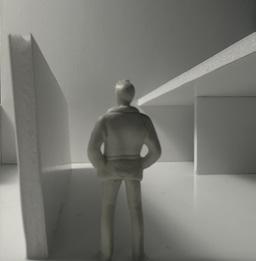 To illustrate the sequence of wall, column, and space, I chose to use the emotion of sadness. The reason I chose this was because the figure always looked lonely. In the photos I have selected, the figure is always alone. My idea was to have the walls and columns guide the figures’ path. This space is tight and enclosed to represent the feeling of sadness. The first photo shows the column to the right of the figure. The figure is slightly left to the column facing straight ahead. As I am standing next to the column, it seems to stay still. This makes an opening to the space. The use of only one column evokes the feeling of entering an empty space.