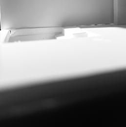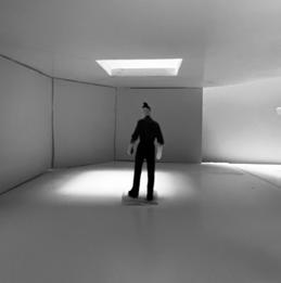 In the ninth photo, the wall faces the figure, and a square void shines light through. As I look at the wall and void, I see the differences in the light. As it changes, the room gets lighter or darker. This leads to different emotions as the light changes. I feel sad being in the gloominess.