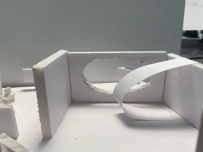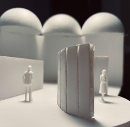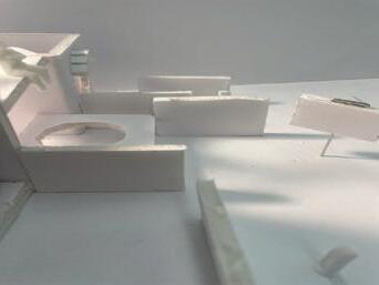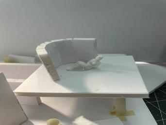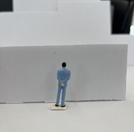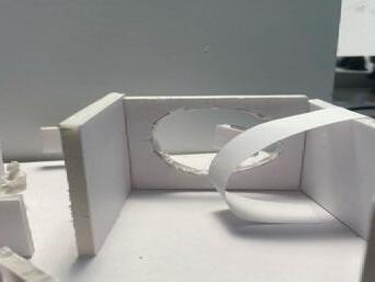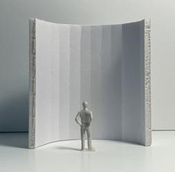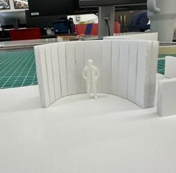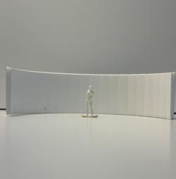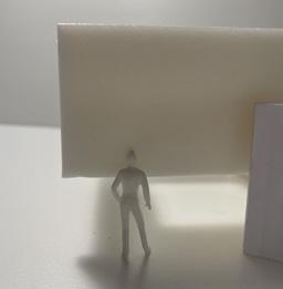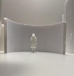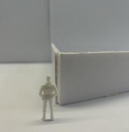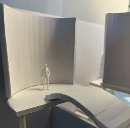 In the sixth photo, the degree increases in the opposite direction from the figure. The figure has a view of the connected edge as the walls get wider. At the start, I felt a sense of openness and the freedom to go either left or right. The pointed wall gave me a feeling of coldness. The space was too open for my liking, but as the walls got wider, it created more of a closed-off area.