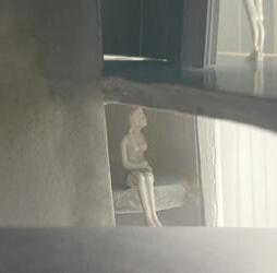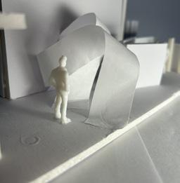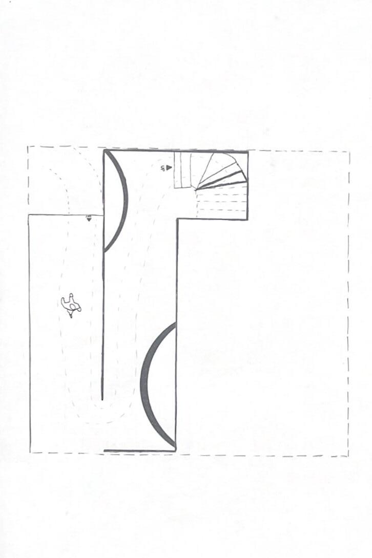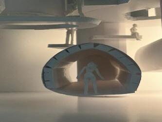 Next is category 28. The image I chose shows two curved walls moving in the same direc�on. The human gure walks between the two walls. This image has a spooky feeling to it because it is unknown what is on the other side of the curve, and like anybody, I am fearful to nd out. I chose this scene to be next because of the transi�on it provides. Going from spherical/circular shapes to two at walls can be underwhelming, however the curvature of the two walls leads a spooky transi�on to the next scene.