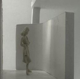 In the twelfth photo, the wall is curved. The figure stands on the interior of the curve. I feel like I finally made it to the end, but everything remains closed off. This still makes me sad and lonely. I regret walking all this way to still feel alone and stuck.