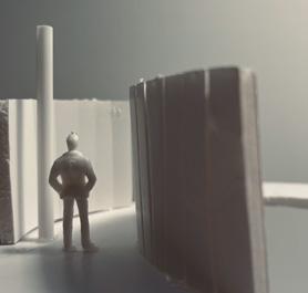 Finally, category 21 nished up the maze. The image I chose uses wall and columns to modify light in a se�ng. The human gure walks between the walls and columns. Since the light is shown from the front of the human gure, I get an uneasy and dark feeling.