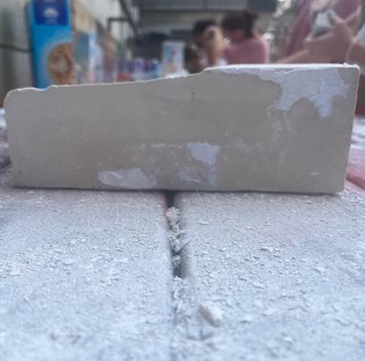 The path moves on to category 15. The image I chose shows a oa�ng wall, angled down. The human gure stands closely below the wall. I feel fear when looking at these images due to the angle of the wall, it appears as if the human gure is in danger.