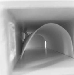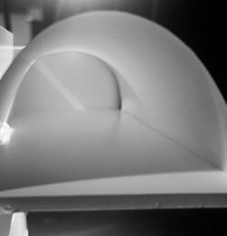 In the eighth photo, there are two curves and a figure in between. The figure stands in the middle and looks as if it is walking through the walls. As I stood in between the walls, I felt very enclosed. I felt as if I had limited space. The way that was the most intriguing was to walk forward but it was hard to do so.