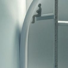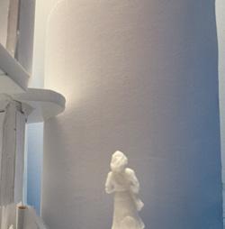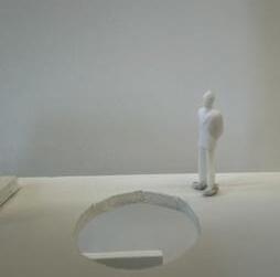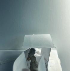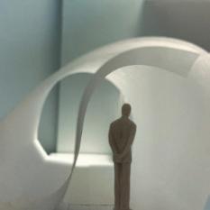The tenth photo shows a curved vertical surface with a void. The figure stands below the void. The light changes coming from above. As I stand near the void, the curved vertical surface draws my eyes upward. I feel as if I can’t get to the light. It is over my head, and the wall is too hard to climb up so I must continue straight.
