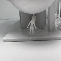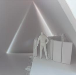 I started my nal project with category 58. The image shows a circular void with a sphere placed in it. The human gure stands below the shape. I made this the rst category due to the ominous feeling of the scene, and the tone it sets for the rest of the display.