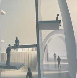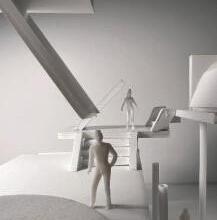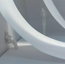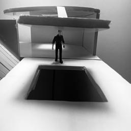 Moving back category 58 can be seen. The image I chose shows a sphere placed in the center of a circular void on the upside. The human gure stands under the void looking up at the sphere. These images have an unse ling tone to them due to the terrestrial shape in a once simplis c room.