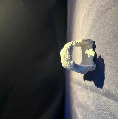 The tenth photo shows a curved vertical surface with a void. The figure falls down the hole and stands below the void. The light changes coming from above. As I stand near the void, the curved vertical surface draws my eyes upward. I feel as if I can’t get back to the light and this brought my spirits down. It is over my head, and the wall is too hard to climb up so I must continue straight.