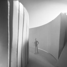 In the twelfth photo, the wall is curved. The figure stands on the interior of the curve. I feel like I finally made it to the end, but everything is once again closed off. This still makes me sad and lonely. Even after walking through everything, I still feel alone and stuck.