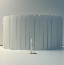 The viewer then turns around to see category 17. A tall wall (also a ladder) moves up into the void. A human gure stands below, gazing at the wall. This display almost gives me Megalophobia due to the innite height of the wall.