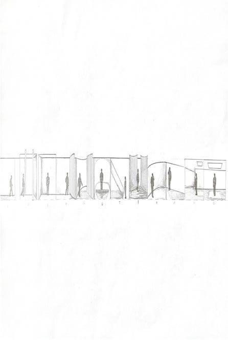 To show the sequence of wall, column, and space, I chose to use the emotion of sadness. The reason I chose this was because the figure always looked lonely. In the photos I have selected, the figure is the only one there. My idea was to show the sequences that look like obstacles. This brings out the emotion of having to overcome a bunch and not having others to support you.
