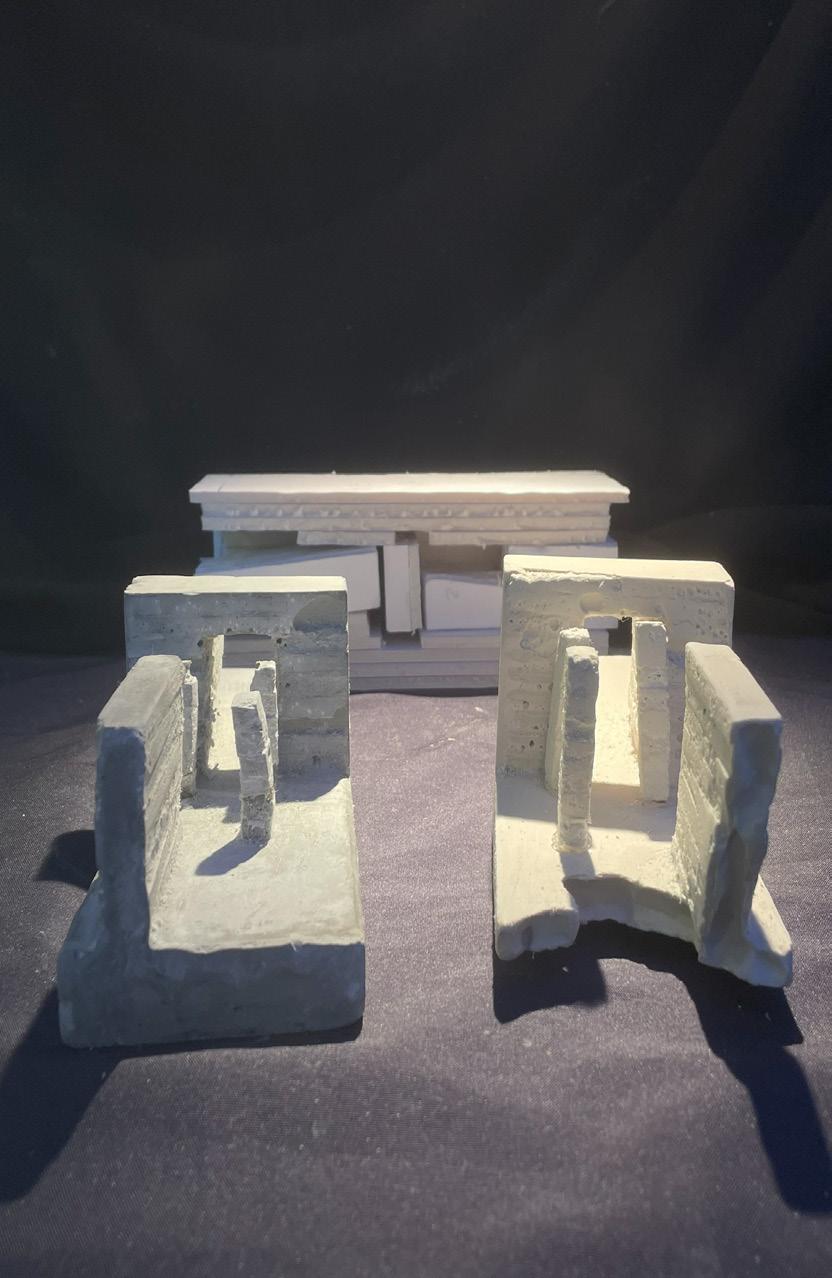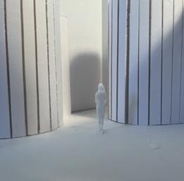 Finally, category 21 nished up the maze. The image I chose uses wall and columns to modify light in a se�ng. This scene also has a higher ceiling, this is in order to allow more visual. The human gure walks between the walls and columns. Since the light is shown from the front of the human gure, I get an uneasy and dark feeling.