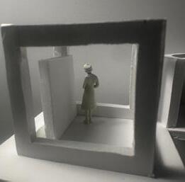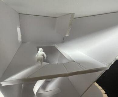 For my Space Cube project, I chose the emo�on of fear. I chose this emo�on because I noted that, when analyzing, many of my images throughout the week made me fearful and I knew I could best replicate this emo�on. I used wall and light to accurately portray this emo�on. By using dark shadows created by walls, this allows viewers to feel fearful. By condensing my twelve scenes into a small 9”x9” cube, I needed to make some changes to best use my available scene.