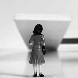 Flipping the cube, you end up at the bo om of a tower in category 17. The image chosen displays a tall at wall. The human gure stands below the wall, peering up. This image gives me megalophobia (fear of large objects), for the wall extends past the frame of the picture and seems like it could p over at any moment.