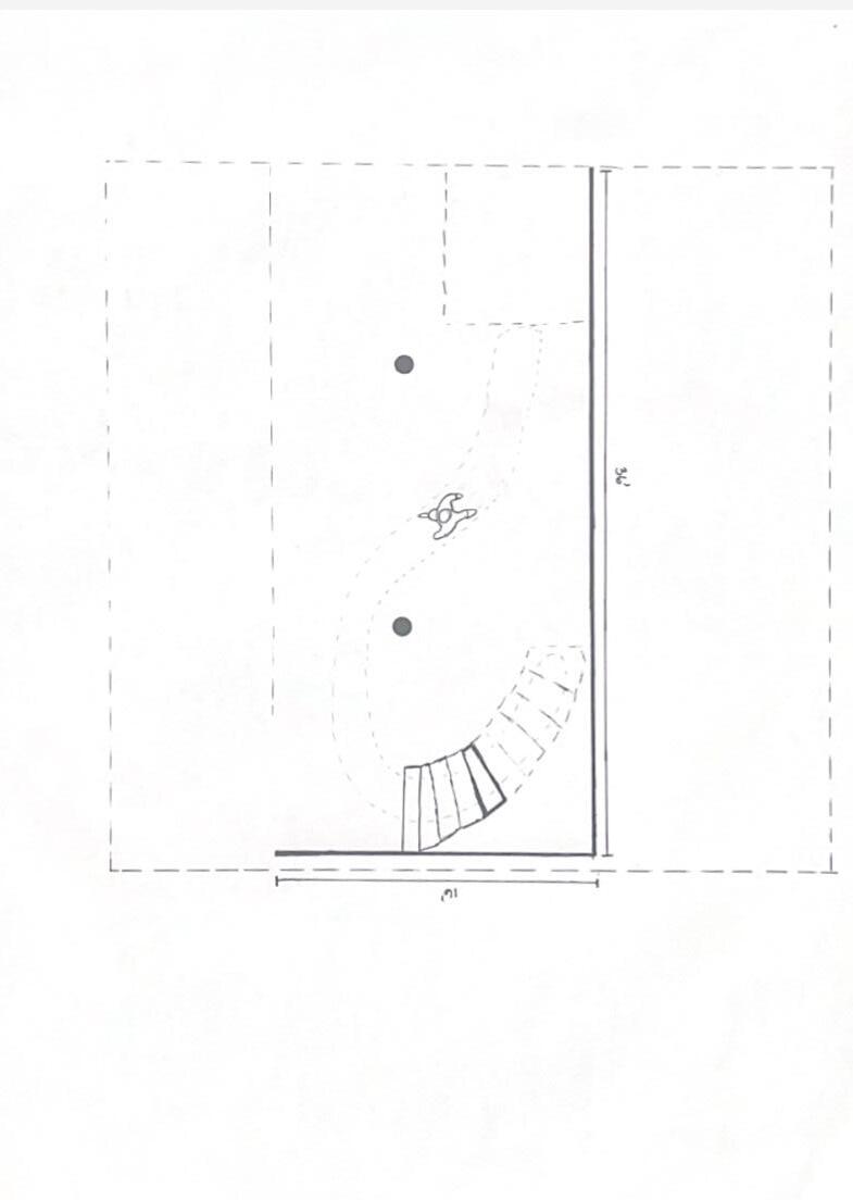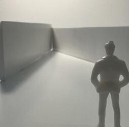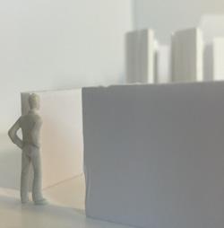 The second photo shows a wall forcing the figure to walk to the right and then straight. The wall is an obstruction that is difficult to navigate. As I looked at the wall, I realized that I was blocked. I was forced to go to the right to get around it. This is inconvenient and makes me feel down.
