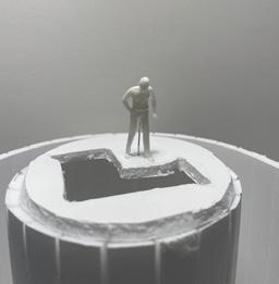 Moving levels up one more me to be in category 47. The image I chose shows a side view of a ver cal wall intersec ng a void on the downside. The human gure stands next to the wall peering down into the void. These images have an eerie tone to them, I feel as though someone could be pushed down one of these voids, not knowing the end to an innite bo om.