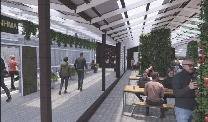 The concept will come to fruition through incorporating textures, vibrant colors, and elements into the kitchen library. The space will have cooking utensils as inventory and the biophilic design will enhance creativity, as well as general wellbeing. Elements within this design will bring the outside in through the plentiful ambient lighting and plant-life.