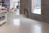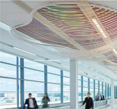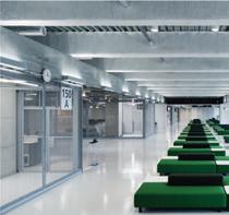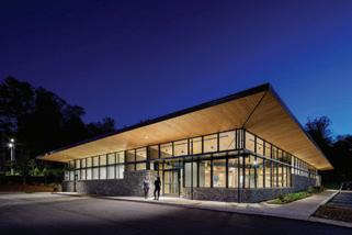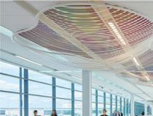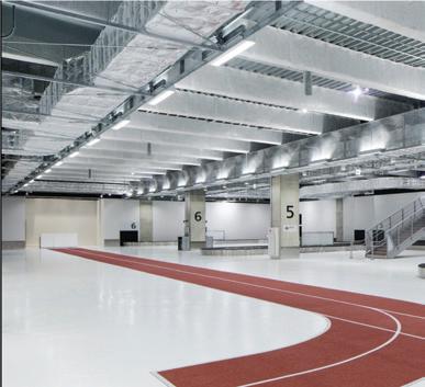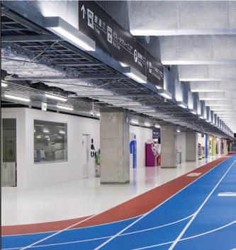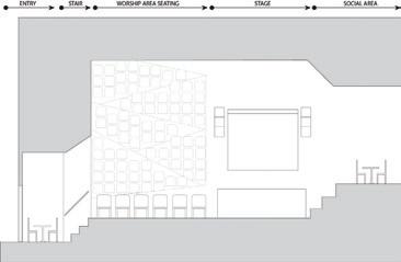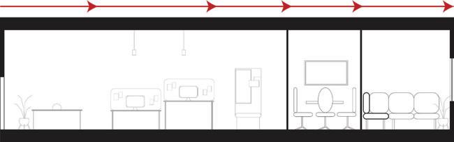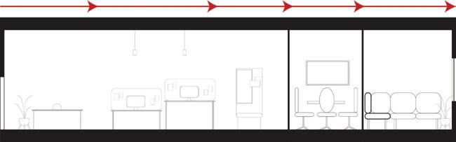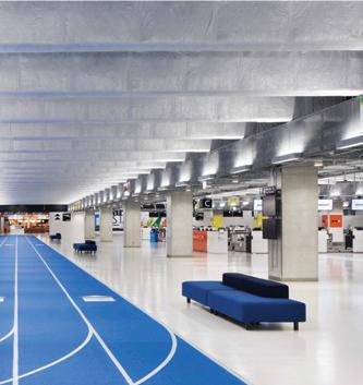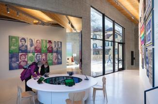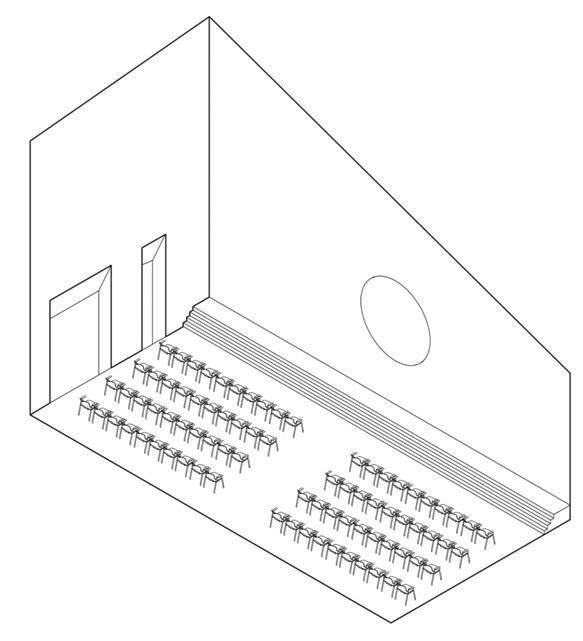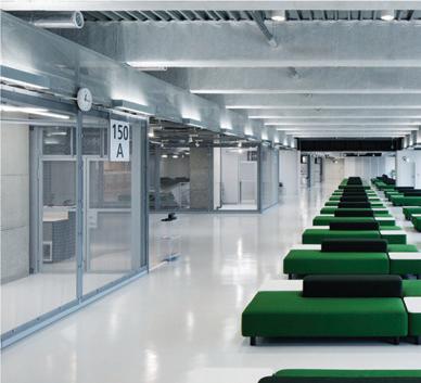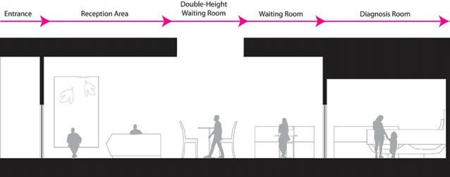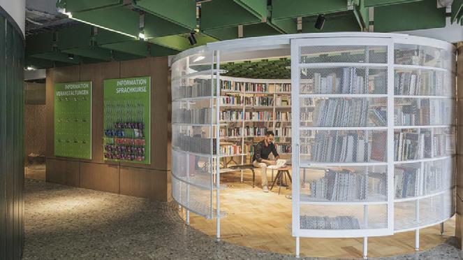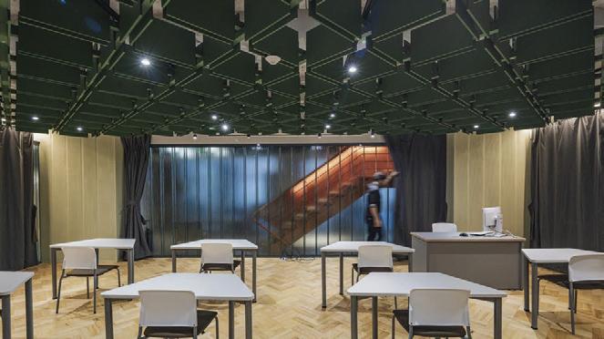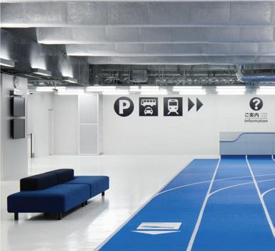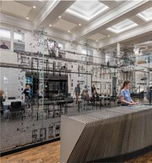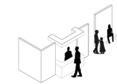 This s shows s the e entrance e desk, , how w the e lighting g is s used d in n the e space, , as s well l as s the e defined d circulation n paths