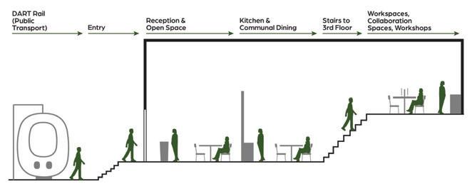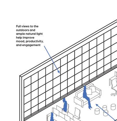 The space will help people tune in to their needs and help their bodies go through the workday in a more natural way. The variety of seating options will allow people to use the space as they need, encouraging them to be as comfortable as possible within the office. The space will promote people living healthier lifestyles through making things such as bike racks and water stations easily accessible.