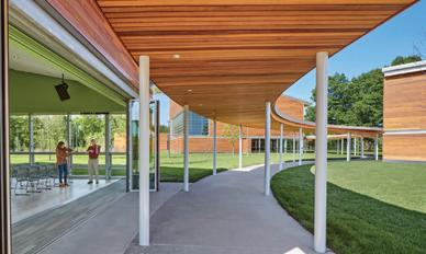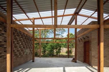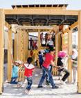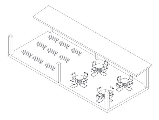 This space has a small awning for rest, arts, and other activities, adapting to the different things the children might be interested in.