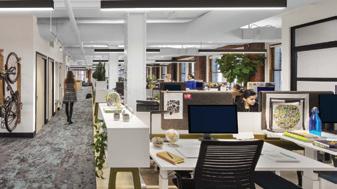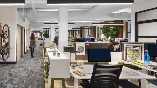 This s space e highlights s the e adaptable e desks, , the e bike e rack, , the e storage e made e for r the e employees, , and d the e exposure e of f the e natural l building.