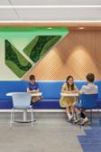 This s highlights s the e comfortable e space e in n the e office e and d promotes s lots s of f natural l light t and d greenery This s is s one e of f the e space e that t encourage e conversation n through h the e seating