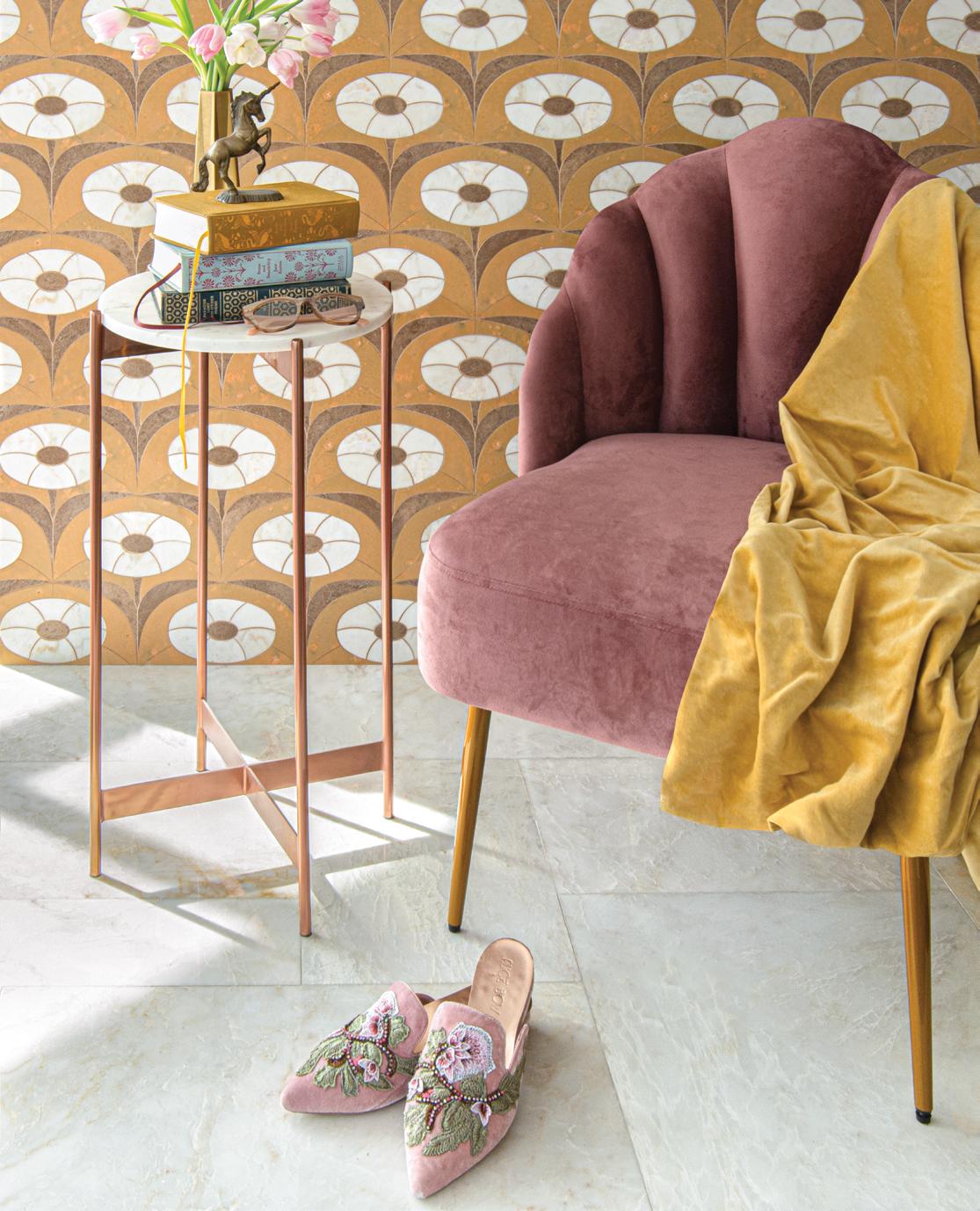 HANNAH Goldenrod, Travertine Noce, Cloud Nine