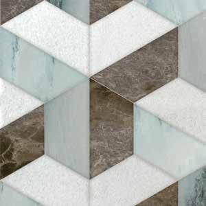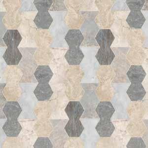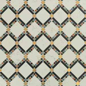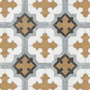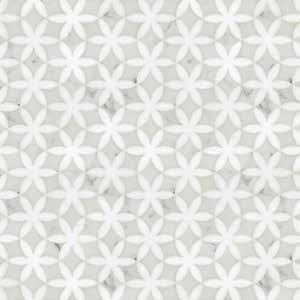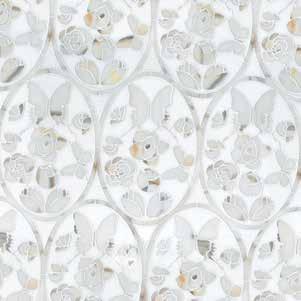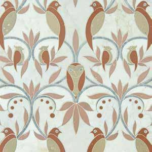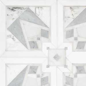 Plum Blossom in honed Lotus, Crema Marfil, Allure, and Thassos.