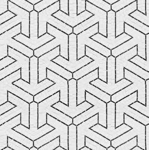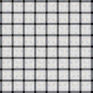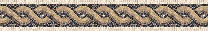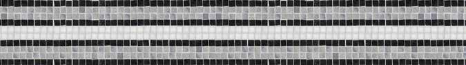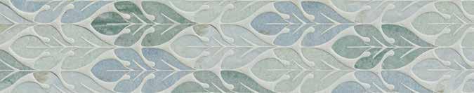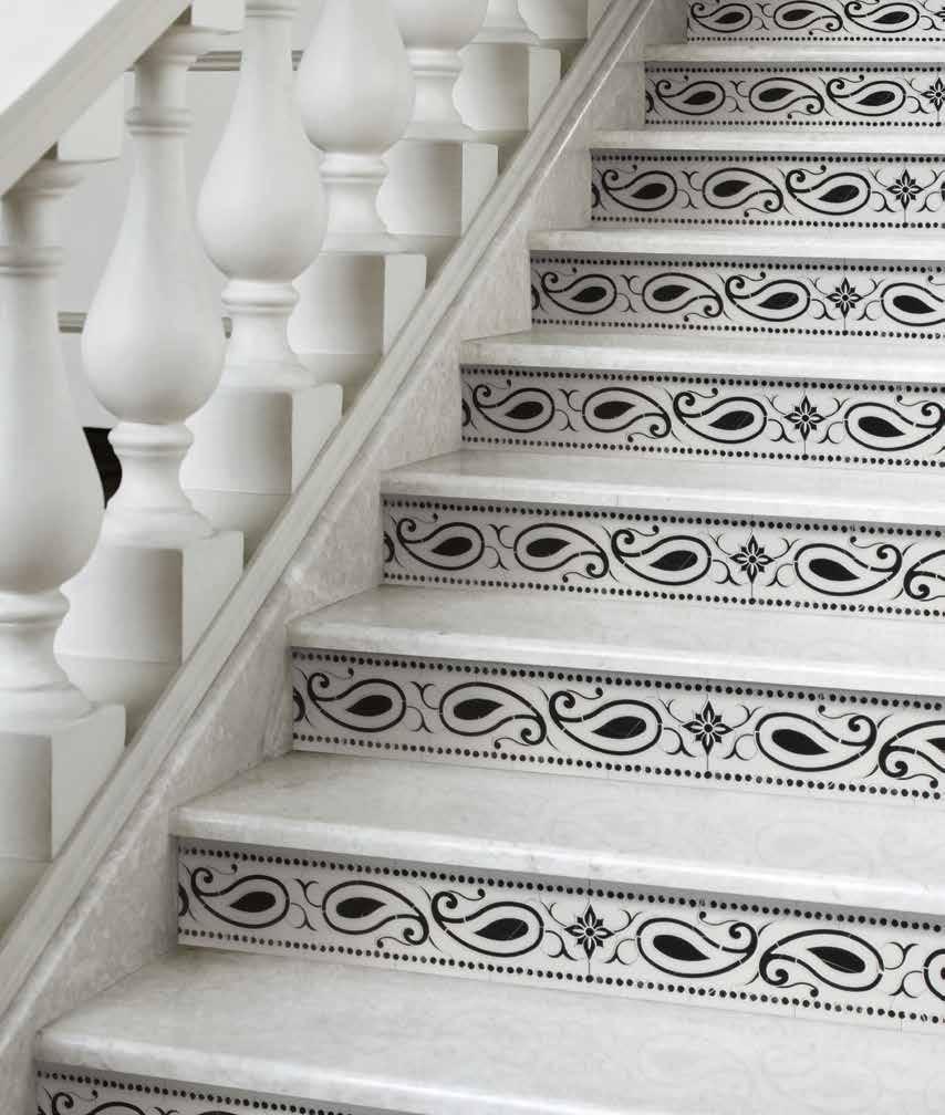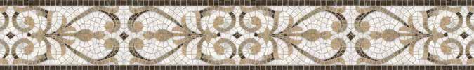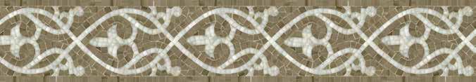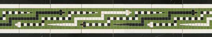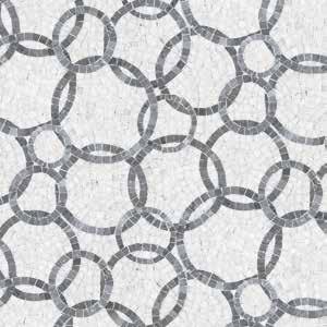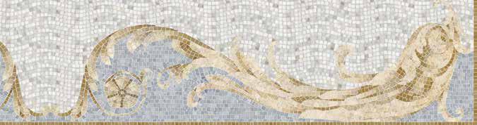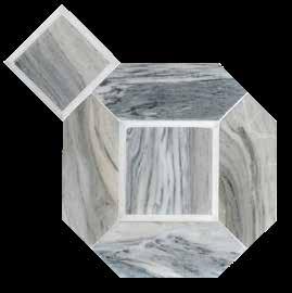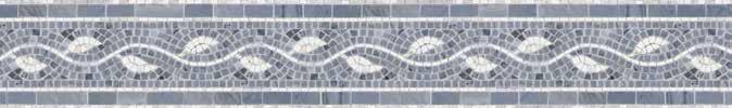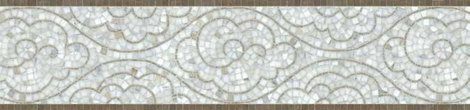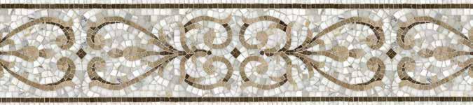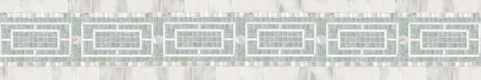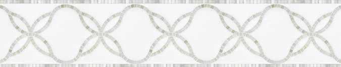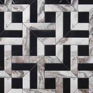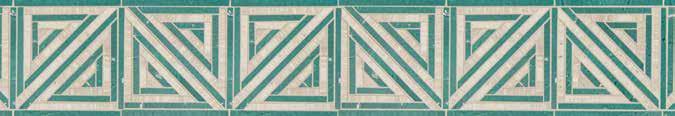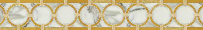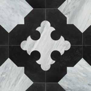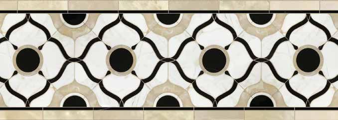 9” Personal Space border in tumbled Nero Marquina, polished Nero Marquina, Alba Chiara, Calacatta Tia, Cirrus, Rosa Noreiga, and honed Horizon. Designed by Cean Irminger for New Ravenna.