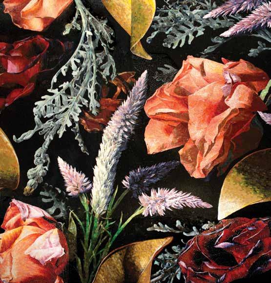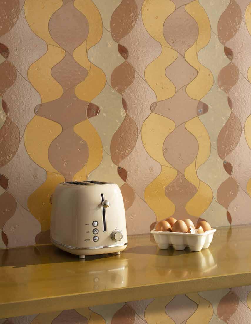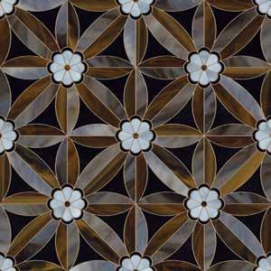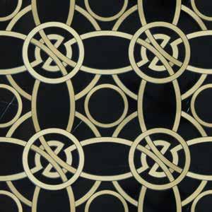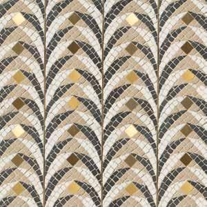 12” Wave and Blossom in Tortoise Shell, Amber, Tiger’s Eye, Jasper, Obsidian, 24K Gold, Dawn Mirror, Moonstone, Alabaster, Champagne, and Rhodolite with honed 24K Gold. Design by Gracie Wallpaper.