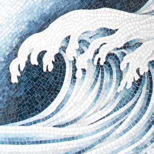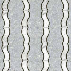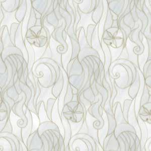 Waves in Marcasite, Zircon, Mica, Pewter, Opal, and Moonstone with Sea Glass™ Moonstone and Absolute White. Design by Gracie Wallpaper.