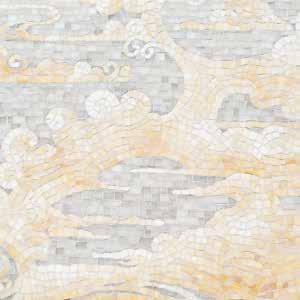 Ombre Tatami in polished 24k Gold glass, Honeysuckle, Moonflower, Calacatta Monet, and Thassos.