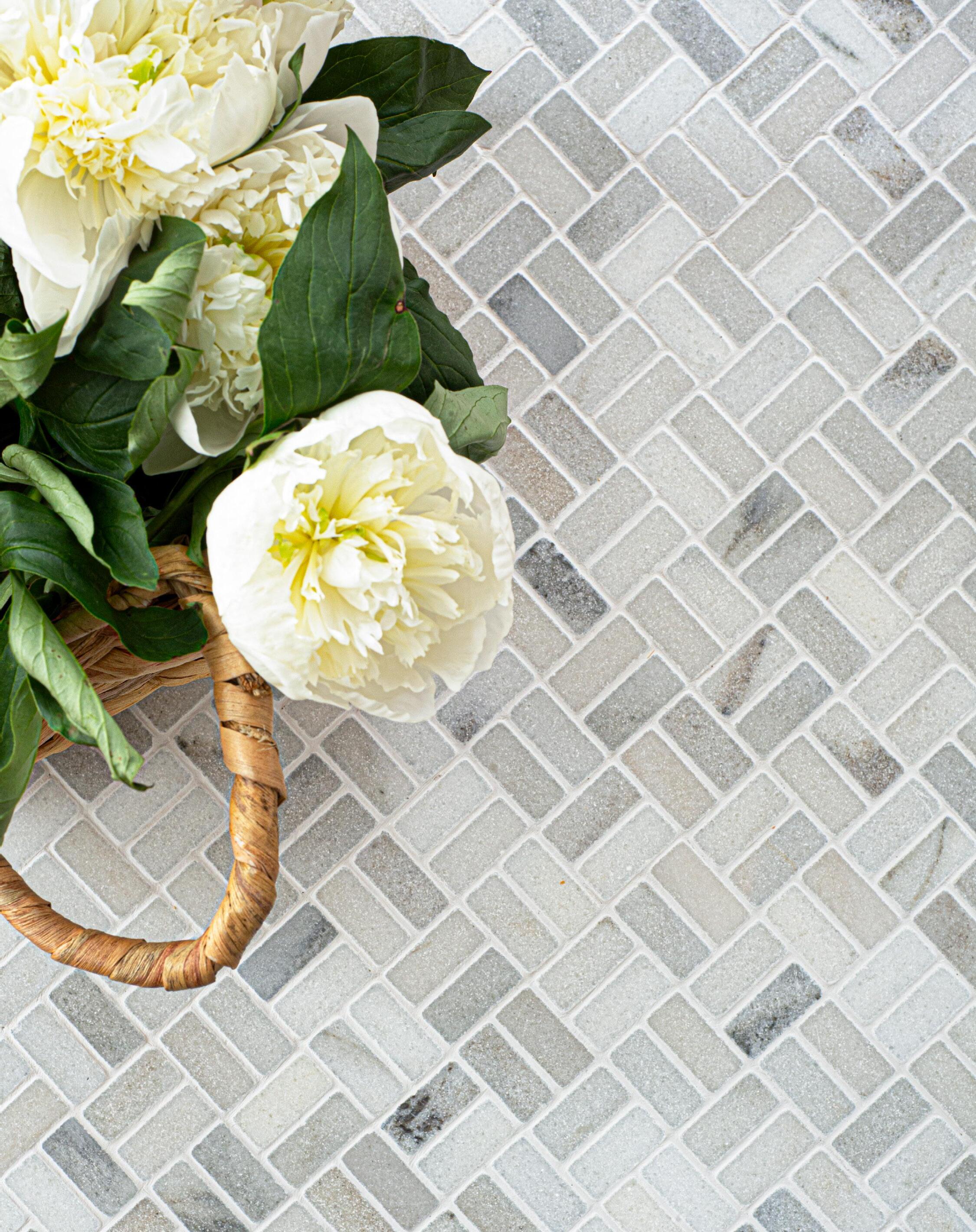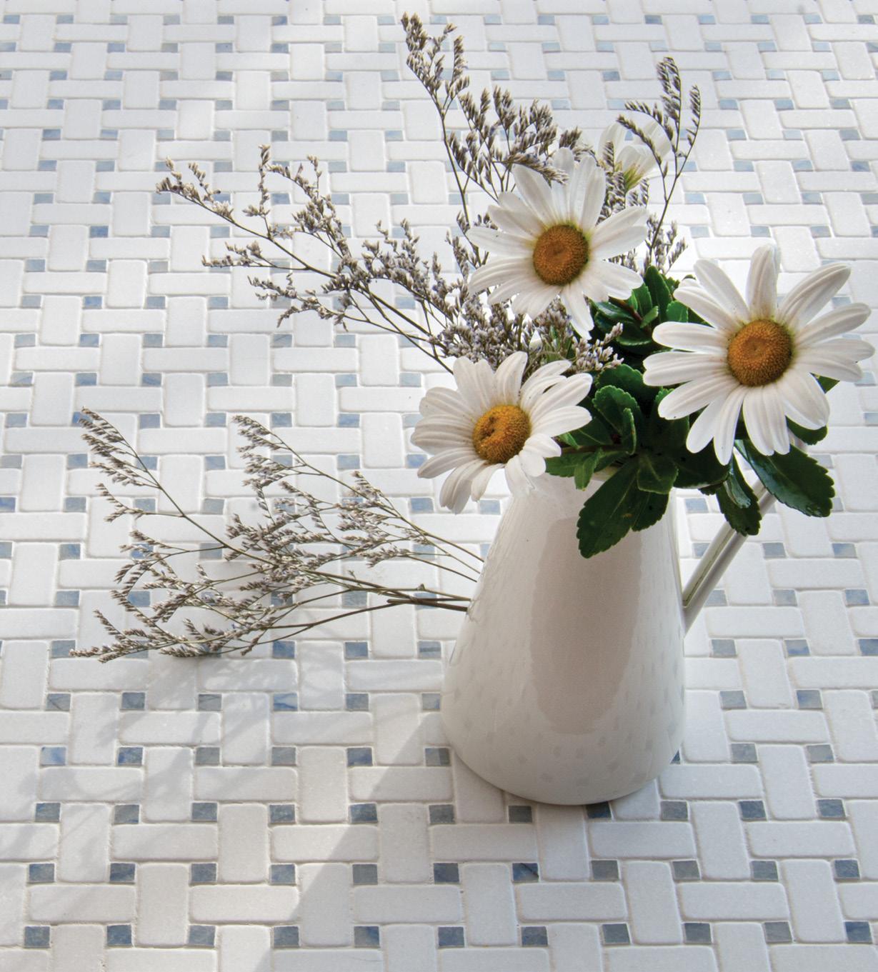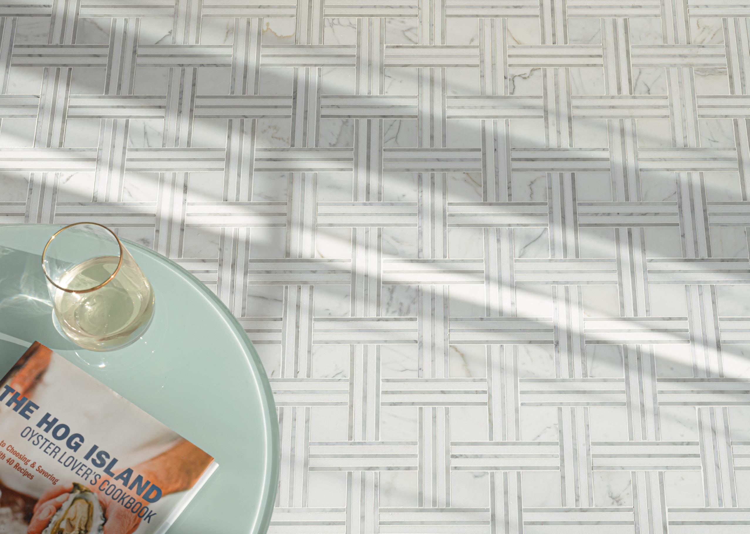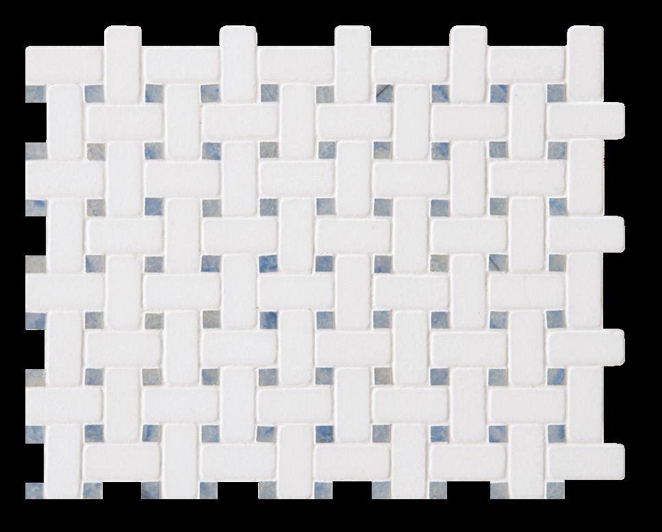 Tumbled Thassos, Polished Blue Macauba WCWICKERWEAVE