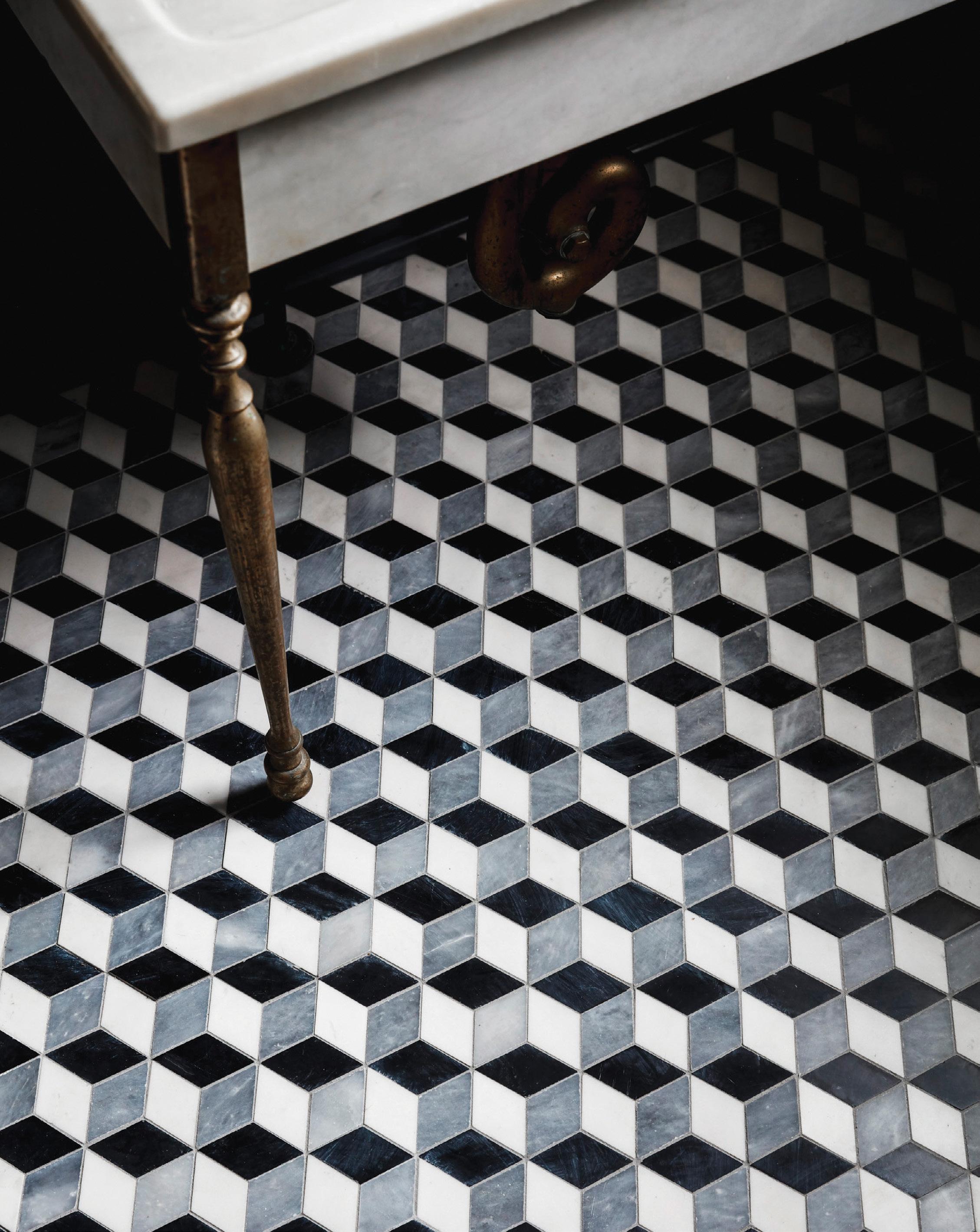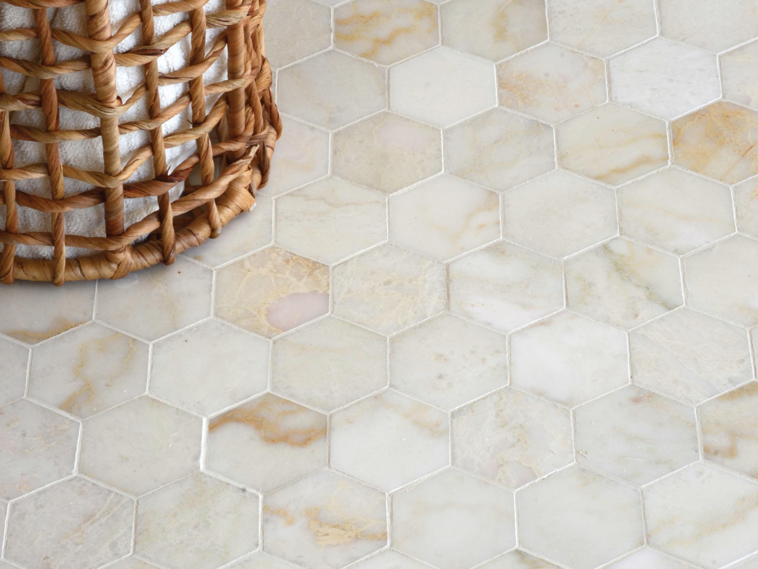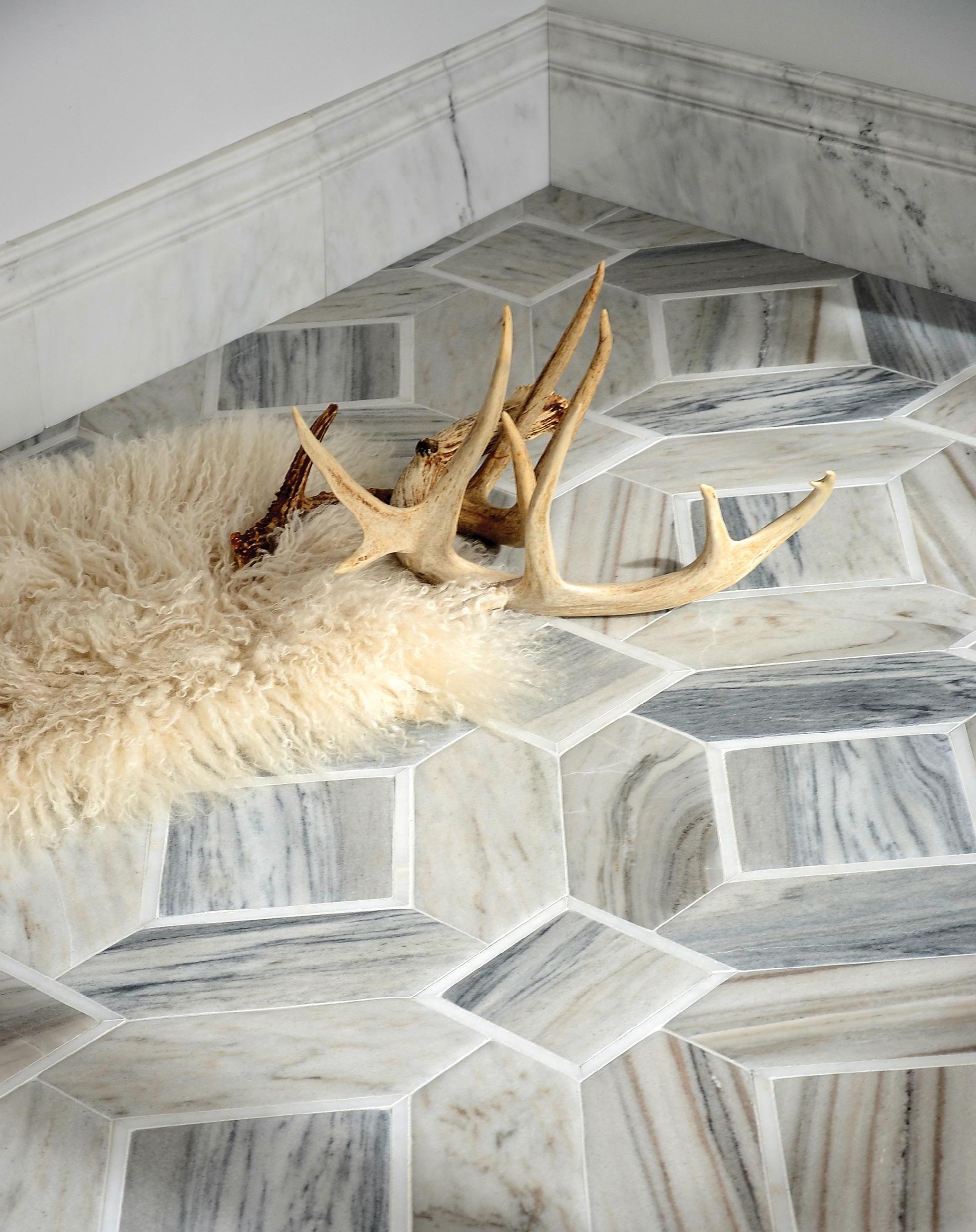 Tumbled Thassos, Polished Blue Macauba WCWICKERWEAVE