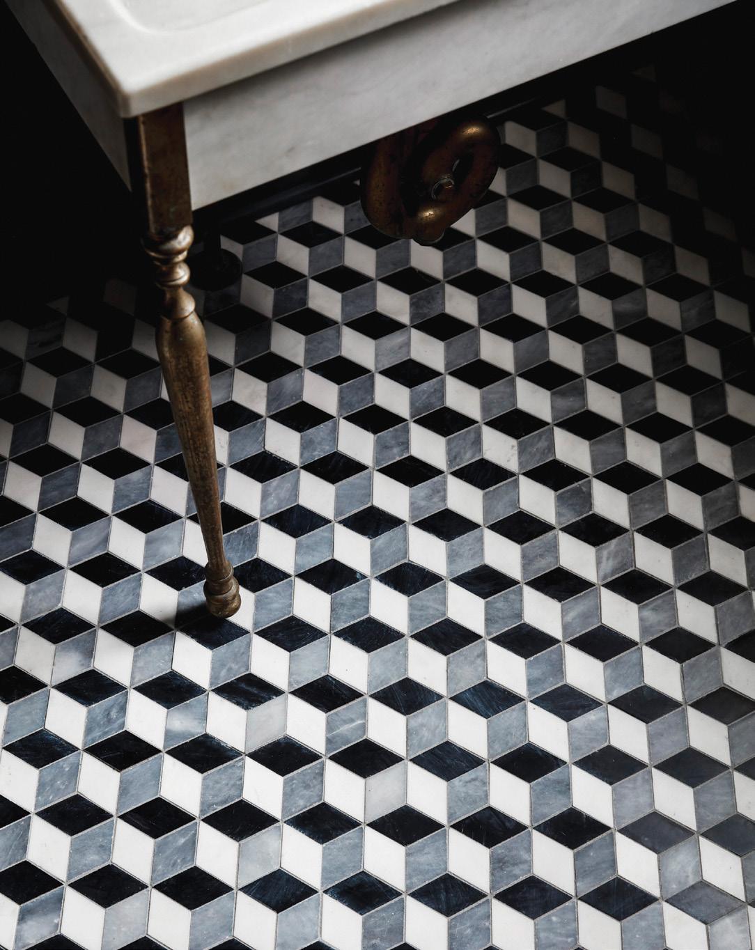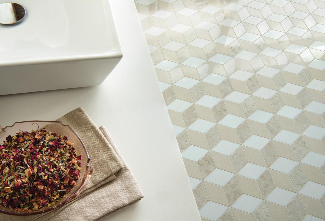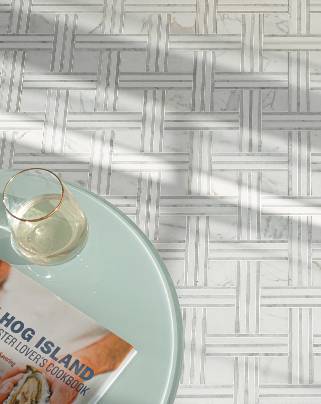 new ravenna TANGIER Honed Bianco Antico, Polished Aloe and Indigo
