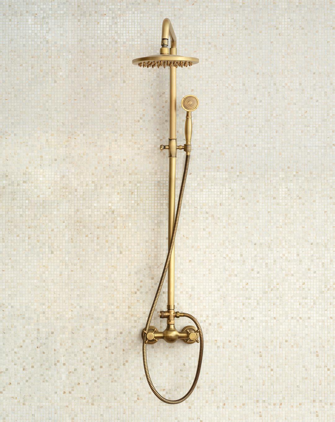 Honed Thassos, Tumbled Nero Marquina, Brass WCINDUS