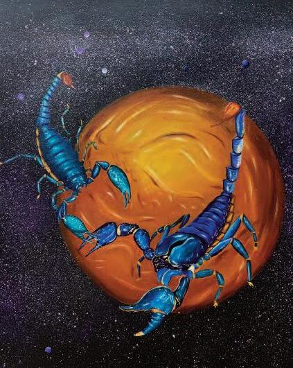 Cette idée de toile à quatre mains vient du fait que nous ayons, en commun un réel plaisir à laisser les choses nous échapper, cela nous ouvre à de nouvelles pistes, notre recherche d’égrégore artistique nous entraîne à créer la surprise, à oser, tout en respectant la création de l’autre