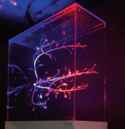 J'ai commencé ma carrière en choisissant des matériaux minuscules et triviaux, simplement figurés par de minuscules fils ou des fils invisibles, suspendus dans un cadre transparent, se déplaçant lentement et en apesanteur selon leurs formes et mécanismes essentiels Afin de renforcer l'engagement visuel des spectateurs en mettant en scène le mouvement des particules, j'utilise des néons de couleur par - dessus.