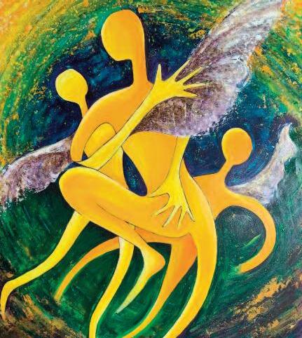 Ailleurs, là où il y a tout et rien, un entre deux aperçu les soirs de pleine lune, les anges se rient de nous. Peutêtre que ce rire n ’est que l’écho du vent qui siffle dans ma tête emplie d’êtres étranges, des ectoplasmes qu’il me faut saisir du bout de mon pinceau Demain jaillira un arc en ciel.