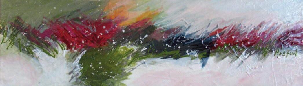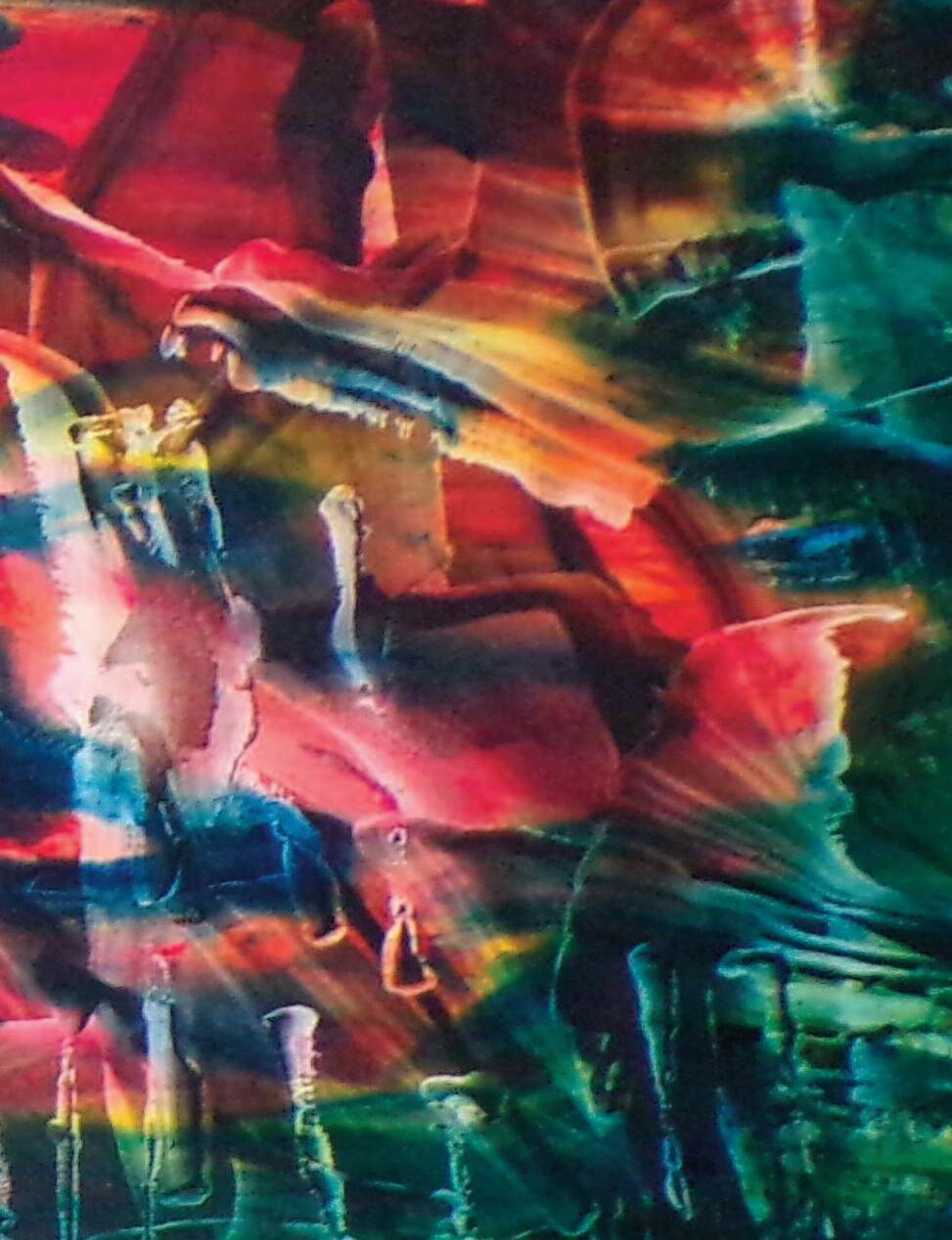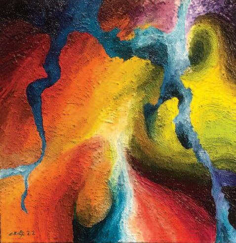 Je m'inspire de l'abstrait et des couleurs que l'on rencontre dans la Nature L'abstrait est partout, il suffit de prendre le temps et de laisser son imagination libre pour bien voir, ce qu'il s'y passe à l'intérieur Si on y passe devant plusieurs fois, on peut le voir différemment