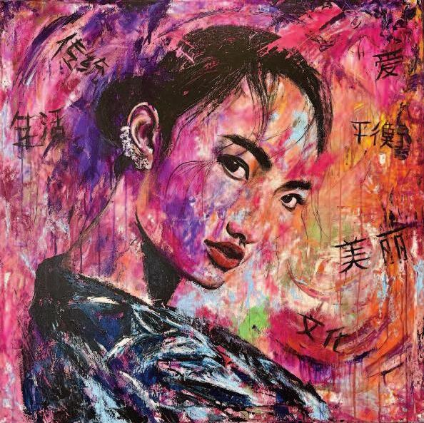 L’acrylique est son médium. Elle le connaît, la maîtrise bien Elle trouve son inspiration sur le web