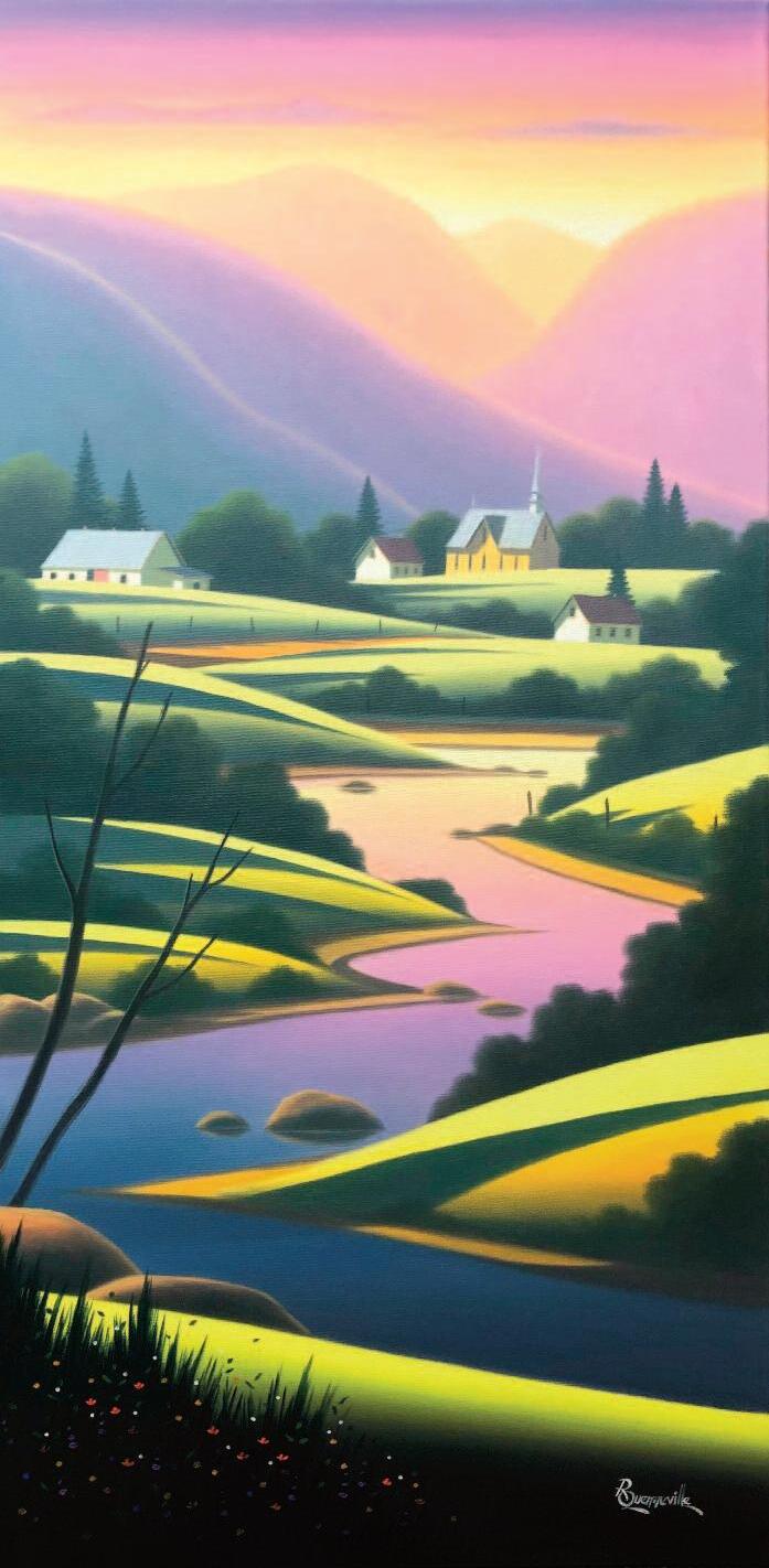 Je peux aujourd'hui prendre le temps de laisser courir mes émotions je les exprime dans les paysages aux couleurs classiques qui rythment l'atmosphère des toiles entre espace et relief où règne le calme l'évasion dans une autre façon de rêver et de me donner corps et âme a mon ouvrage