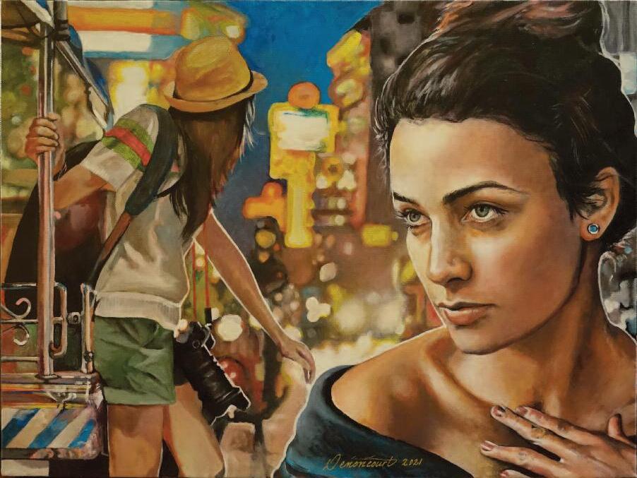 J’ai essayé diverses techniques, mais c ’est l’acrylique et l’huile que j’apprécie particulièrement La première pour ces couleurs acidulées et ses médiums incroyables et la seconde pour sa transparence et sa lumière.