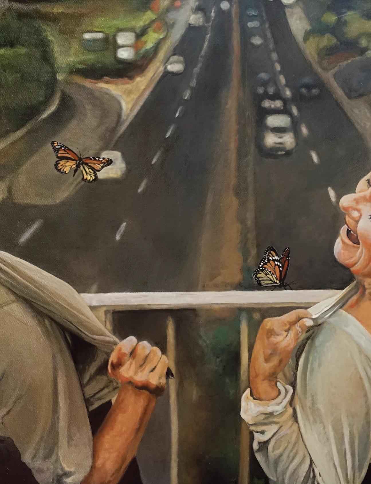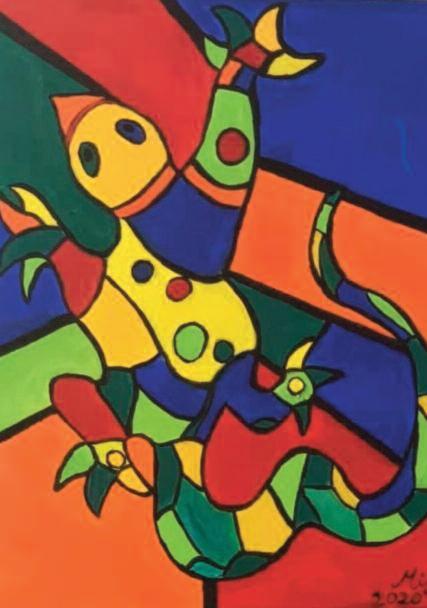 N'oubliant jamais mon origine dans le dessin artistique dans son exécution, tout en couleurs intense, fraîches et spontanées, je me sens me montrer à l'état pur Chaque coup de pinceau, chaque ligne griffonnée nous relie à la complexité de notre environnement