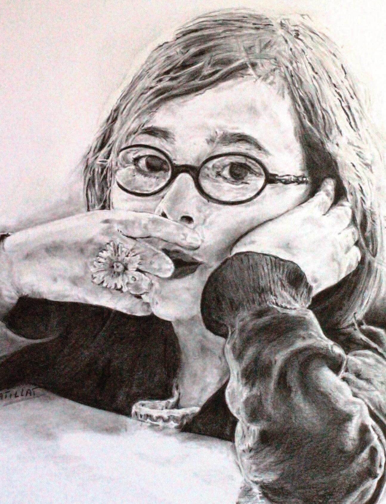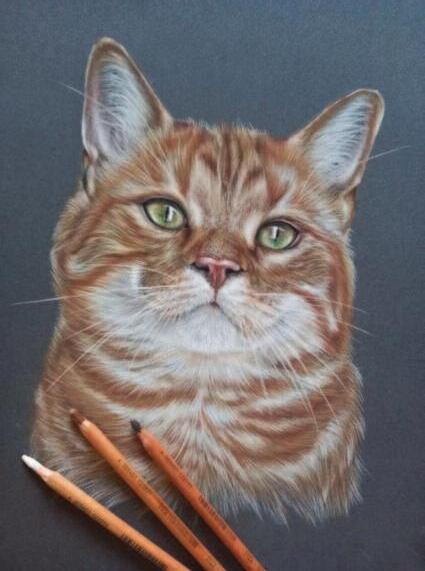 Au début je ne travaillais qu'avec de simples feuilles blanches et des crayons à papiers Après avoir pris de l'assurance et des gestes plus précis, j'ai tenté le pastel sec puis la peinture acrylique, j'ai adoré, ce qui m'a motivée pour la suite