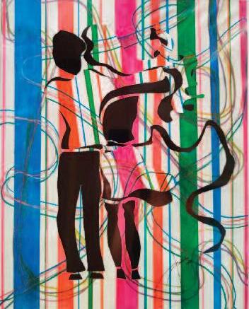 Après des paysages polychromes je me suis exercé dans une sensibilité à partir d'huile sur toile : exclusivement peindre entre les noirs et les blancs des sujets comme des danseurs et instruments de musique qui me permettent de privilégier la