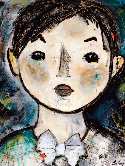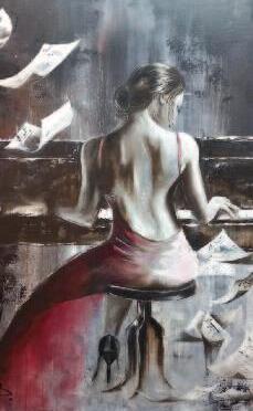 “J’ai commencé à peindre à 12 ans en “imitant” des artistes telles que Titouan LAMAzOU célèbre peintre et navigateur français Je m’inspirais aussi des pochettes d’albums de jazz plus abstraites qui pouvaient créer en moi une émotion que je reporte sur la toile Puis j’ai trouvé mon univers : je travaille essentiellement la peinture, à l’huile, les couleurs vives Je me laisse la liberté de choisir les thèmes qui peuvent varier entre créer un personnage de toute pièce, ou mettre l’accent sur l’émotion que me provoque un visage, un lieu où un objet”, explique-t-elle Des œuvres colorées, où l’on décèle parfois une certaine mélancolie